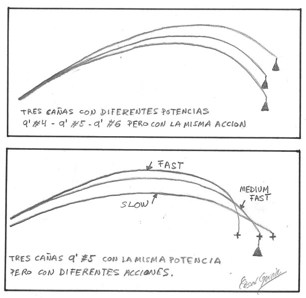 Dónde dobla una caña o acción de la misma es un parámetro independiente y distinto al de cuánto dobla una caña o su potencia.