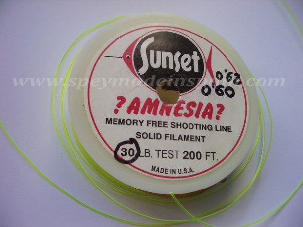 En los años sesenta la compañía Sunset puso en el mercado el primer monofilamento de “Amnesia” que sometido a una tracción antes de su uso eliminaba el gran problema de memoria espiral que tenían los monos normales. Este monofilamento cilíndrico aún se usa hoy en día, y a pesar de perder toda su memoria cuando se le estira y mientras está fuera del carrete, vuelve a cogerla enseguida en cuanto se bobina por su mayor tendencia al encogimiento.